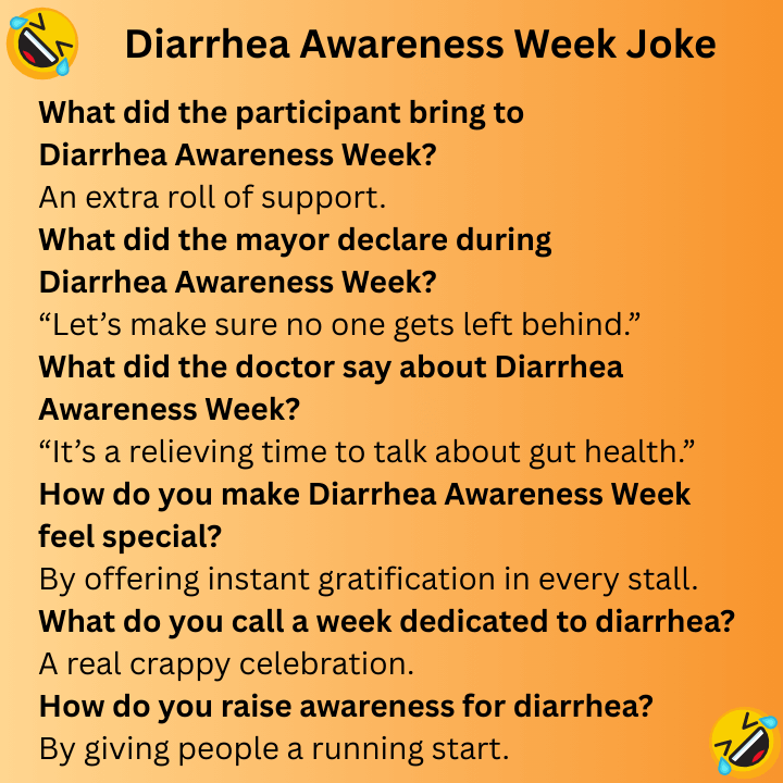 Diarrhea Awareness Week jokes add a satirical edge by blending humor with mock seriousness. These jokes highlight how humor can be used to reduce stigma and encourage open discussion—while still keeping things funny.