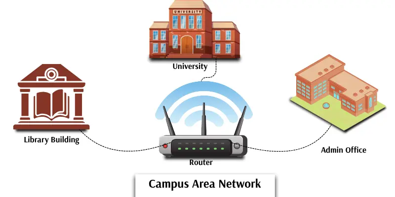 CANs cover entire campuses, linking multiple buildings for fast and reliable communication. Schools, universities, and colleges often use them.